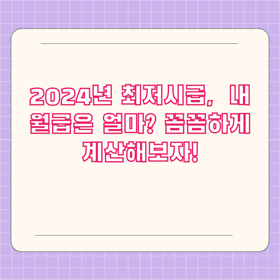 2024년 최저임금이 9,860원으로 결정되었지만, 실제로 우리가 받는 급여는 근무 시간, 주휴수당, 4대 보험 등 여러 요소를 고려해야 합니다. 그래서 준비했습니다! 2024년 최저임금을 꼼꼼하게 계산하는 방법, 지금 바로 알려드릴게요.